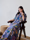 Abstract Floral Bright Blue Pom Pom Cotton Night wear Kaftan