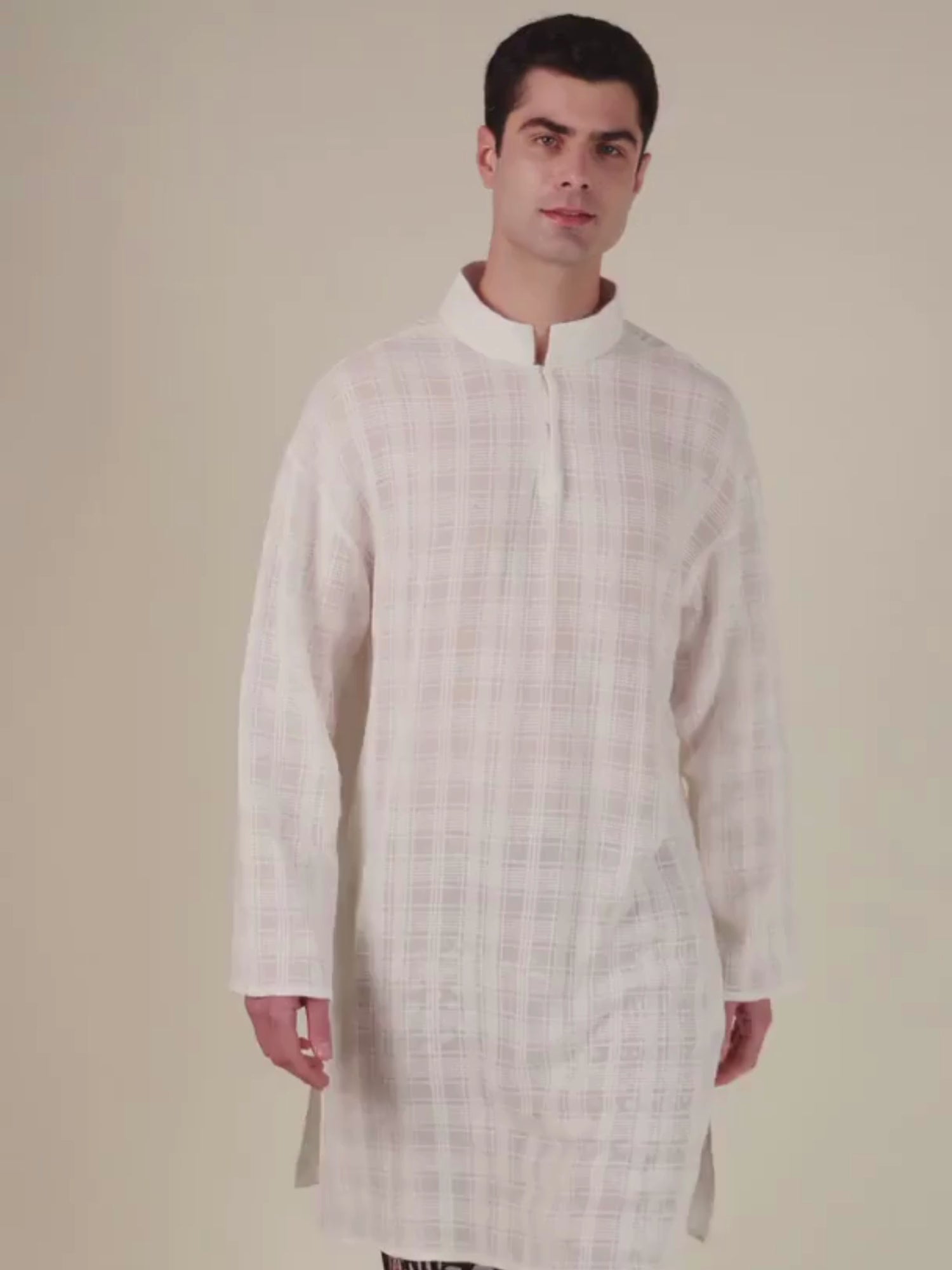 Introducing our Men's White Kurta with Animal Printed Pants, a stylish fusion of traditional and contemporary. The regular-fit kurta features a band collar and long sleeves for a classic look. Paired with animal print pyjama pants, this ensemble is perfect for making a statement. Comfortable yet fashionable, it's ideal for any casual outing or special occasion.
