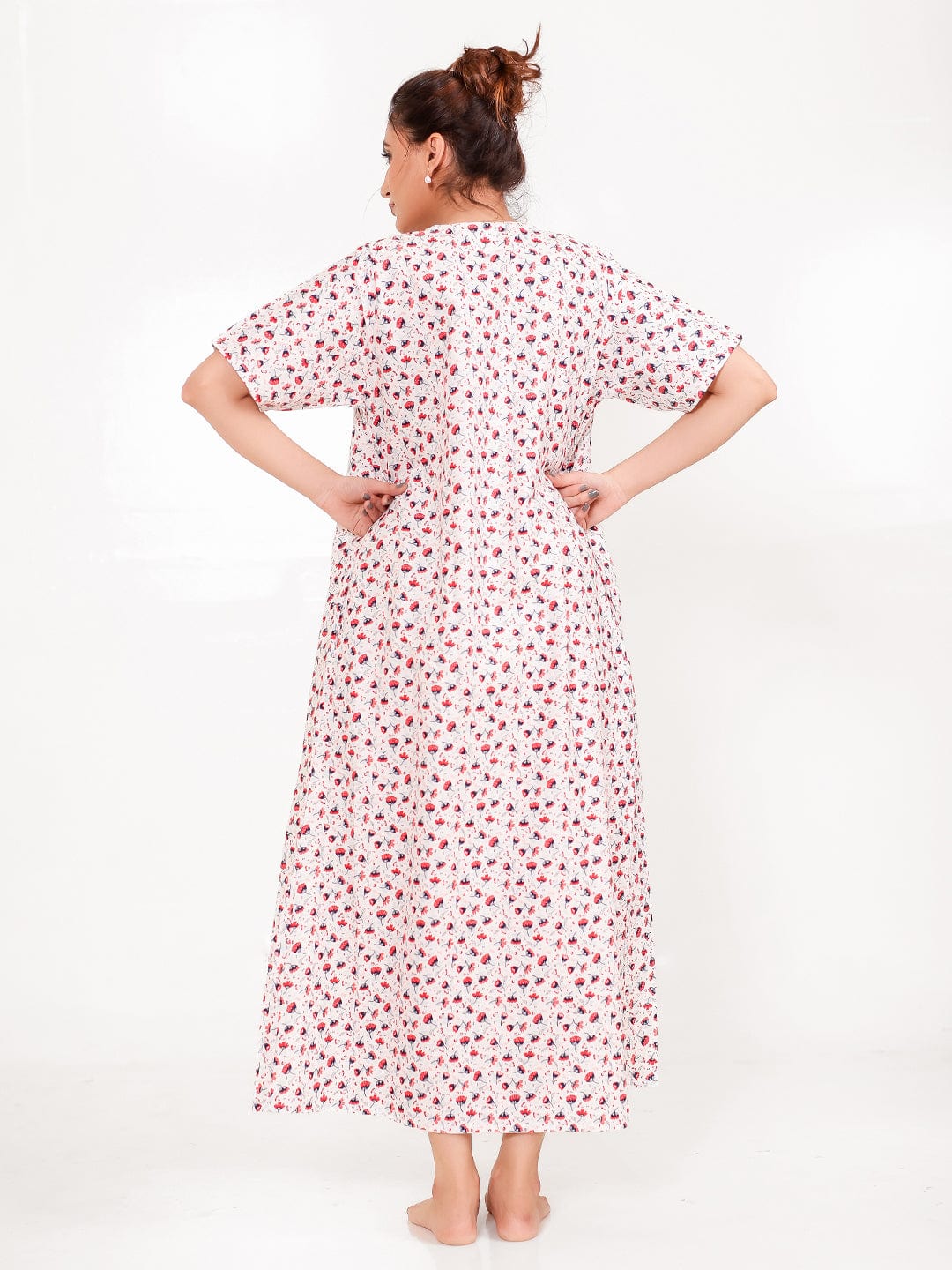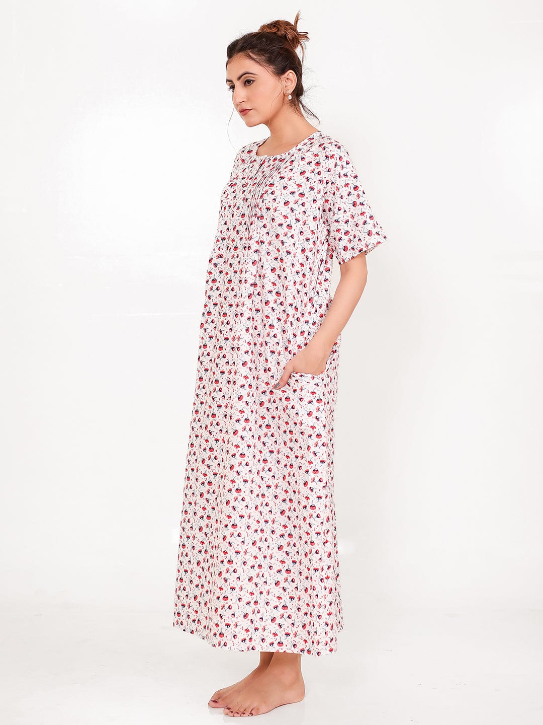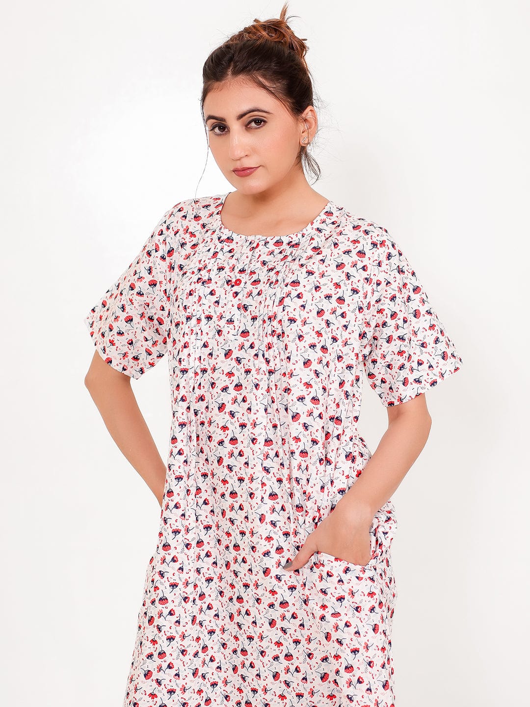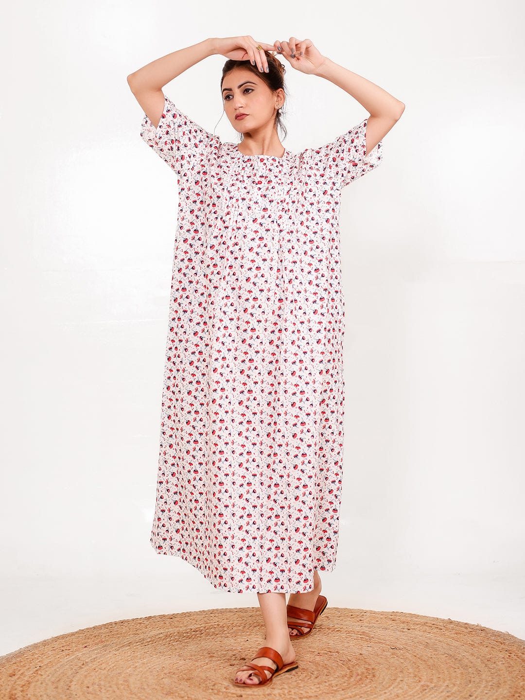 Crisp and lightweight, this cotton-viscose nightdress is sprinkled with red-navy florals and finished with a neat pintuck yoke. Pretty, breathable, and effortless from bedtime to breakfast.