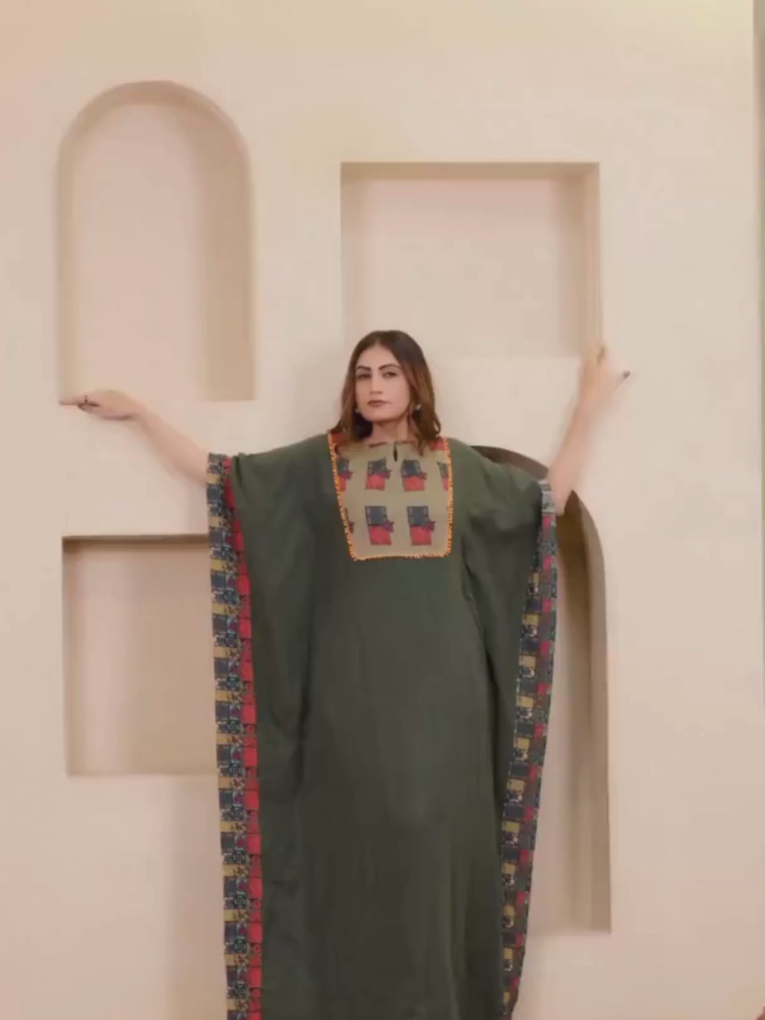 Olive Green Patchwork Cotton Maxi Kaftan